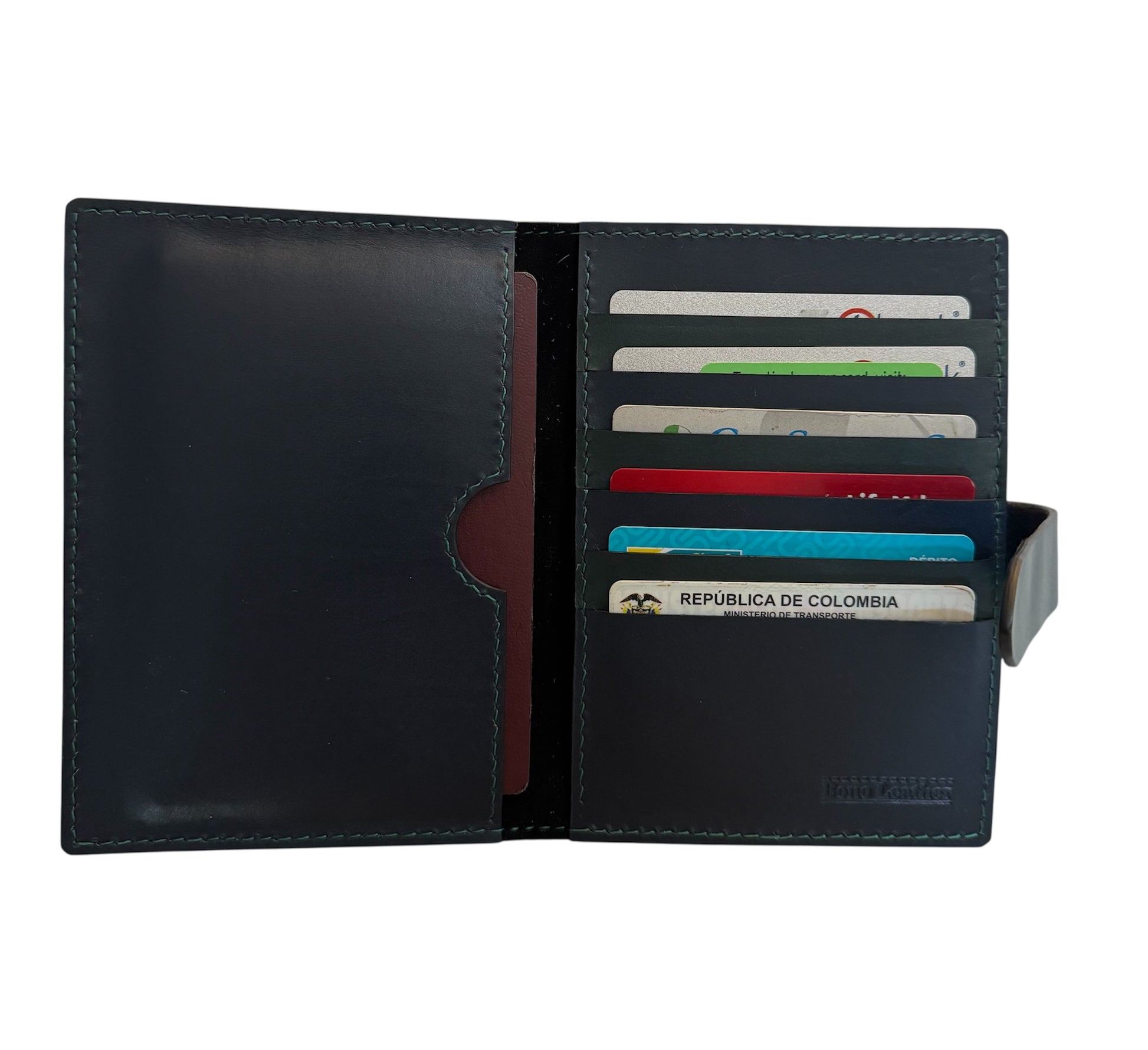 Porta pasaporte 100% cuero becerro.
