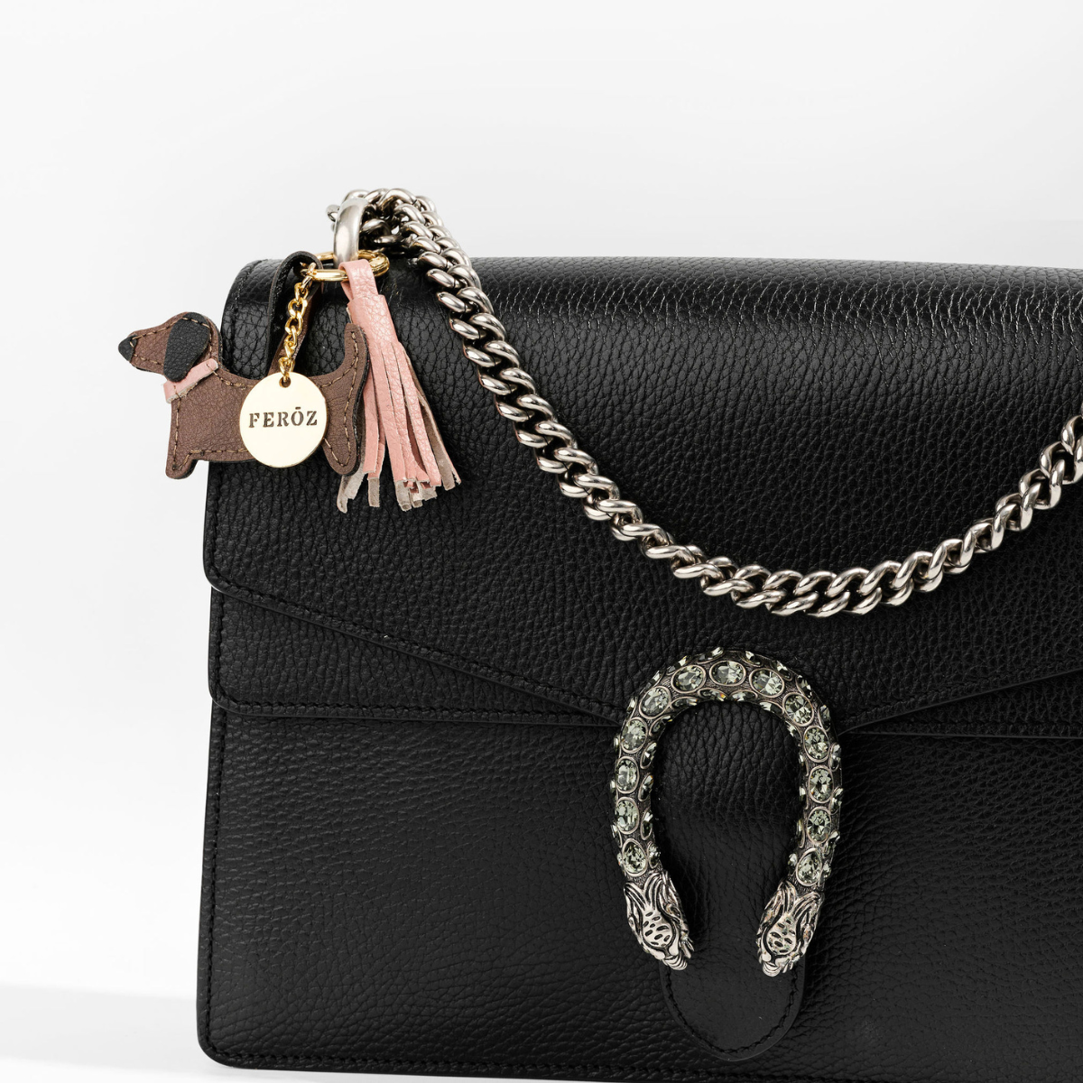 Su diseño elegante y en tendencia lo convierte en mucho más que un accesorio: es un charm de moda que luce espectacular colgado en tu cartera, bolso, llavero, o incluso en la correa y arnés de tu perro. Un pequeño statement piece que resalta estilo, personalidad y amor por tu mejor amigo.
