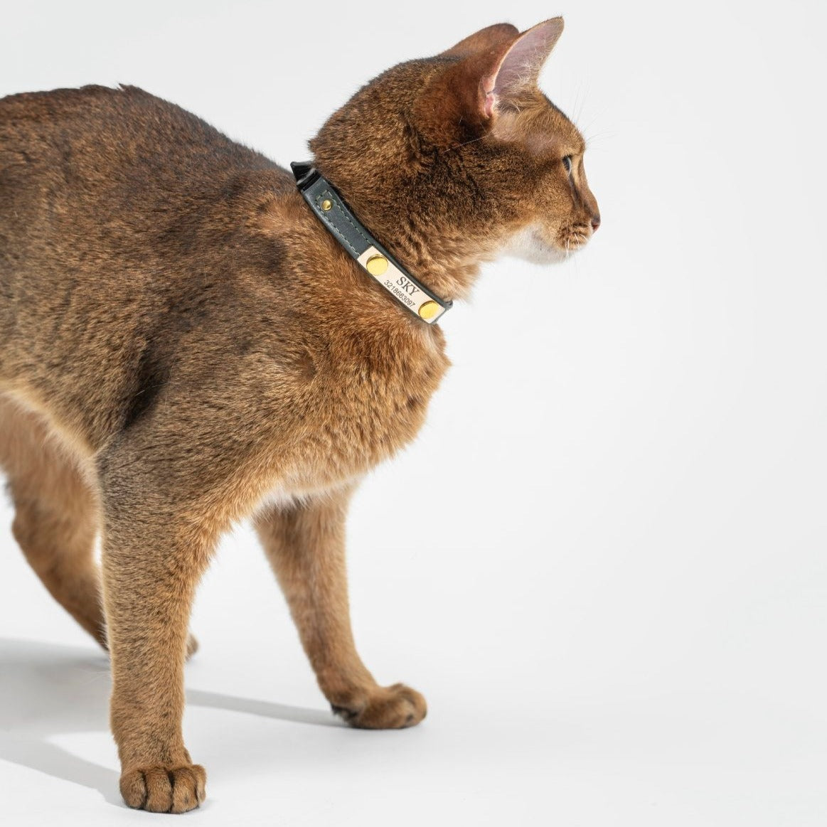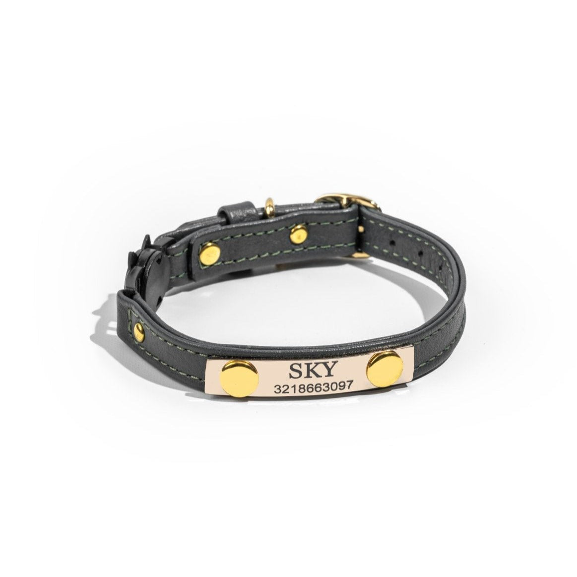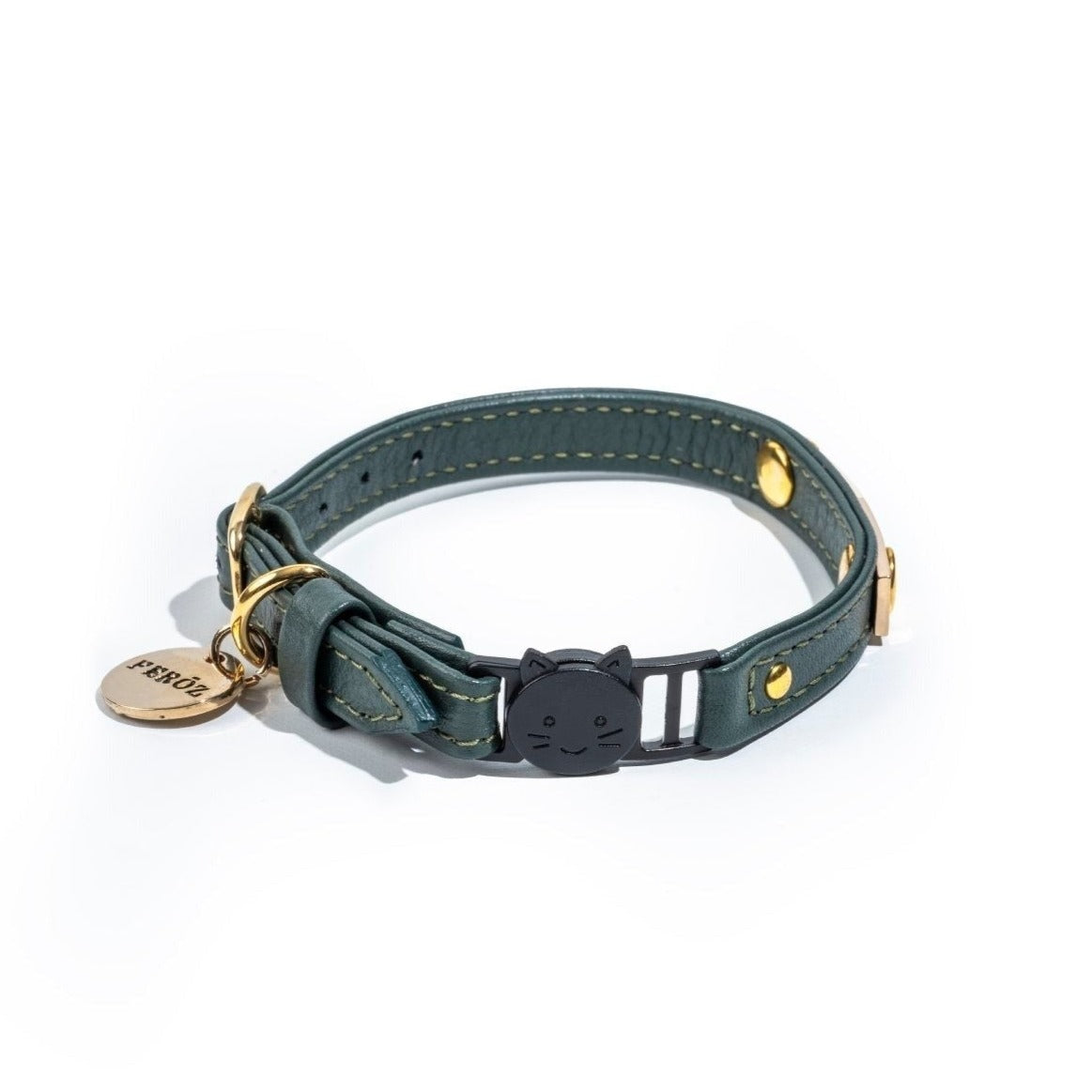 Collar Gato Cuero Verde Pino
