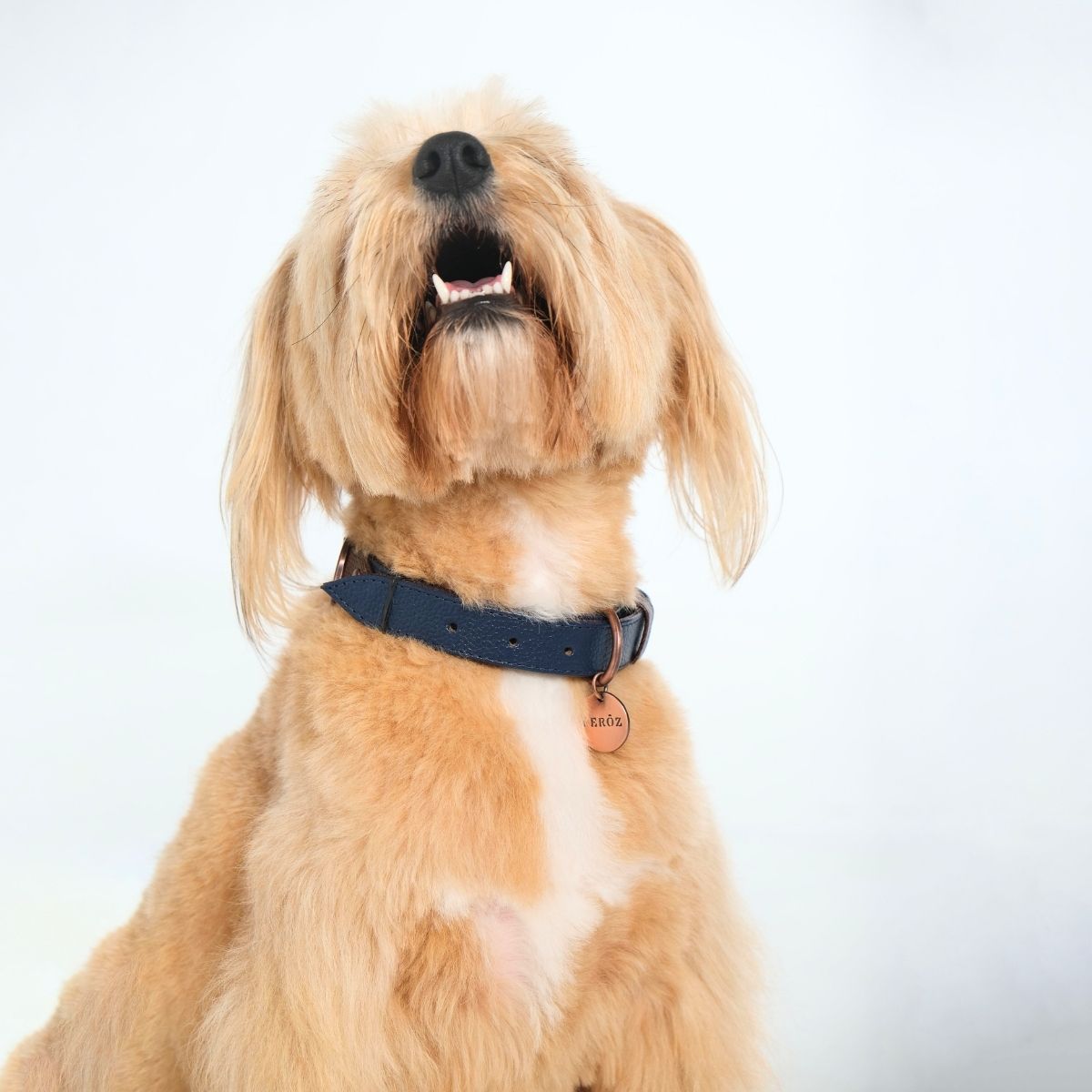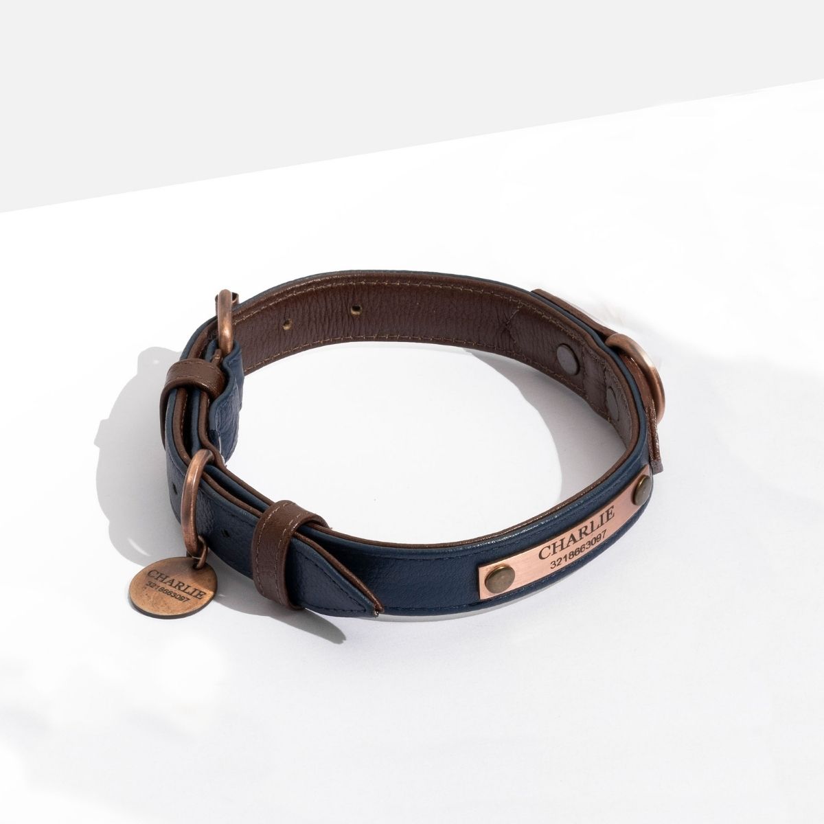 Collares para perros elaborados en suave cuero natural 100% libre de cromo y herrajes en zamak. Hechos a mano por artesanos locales. El ancho de los collares es: XS – 1.5 cm; S – 2cm; M – 2.5cm; L – 3cm; XL – 3 cm. Para saber el largo y la talla adecuada se debe revisar la guía de tallas.