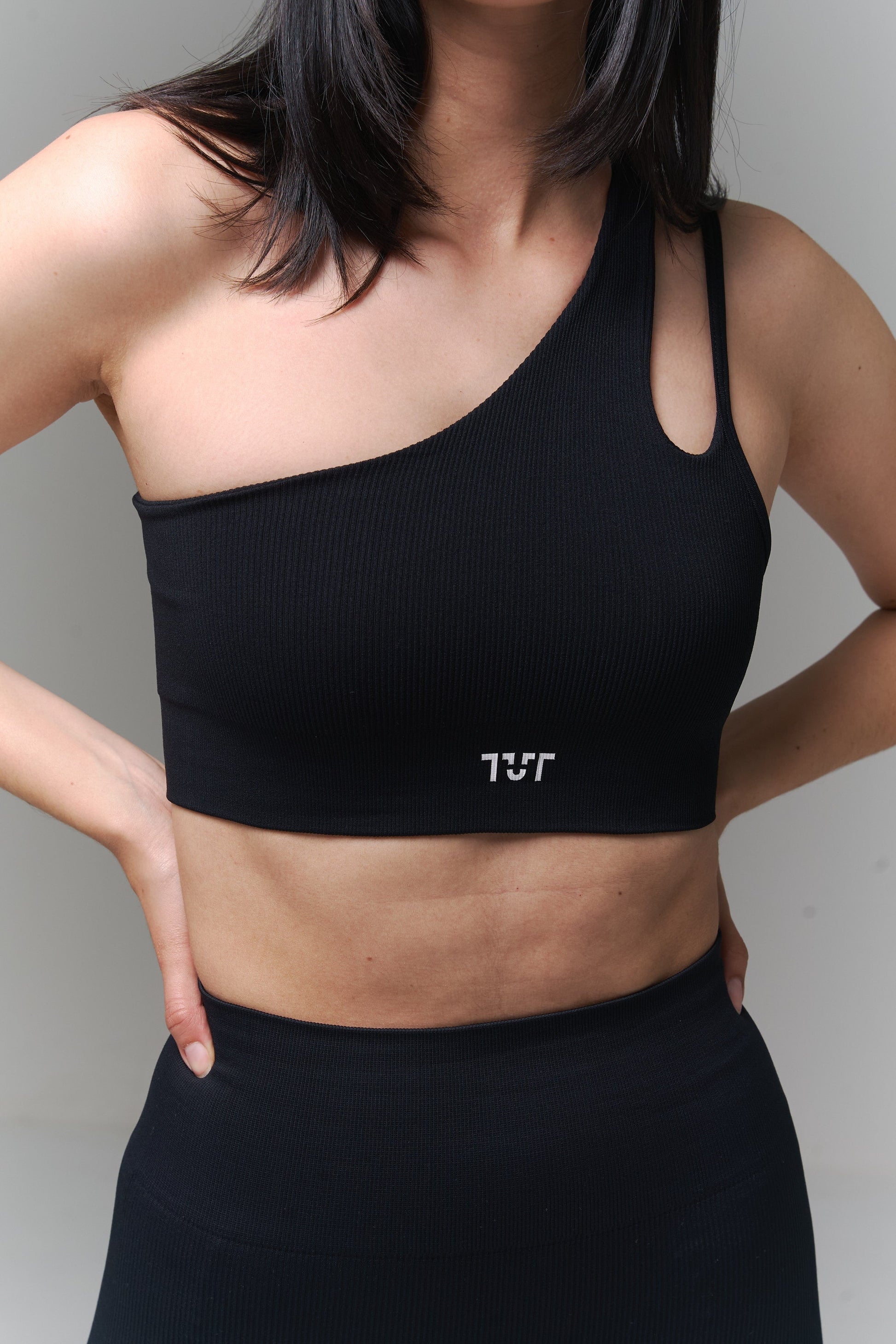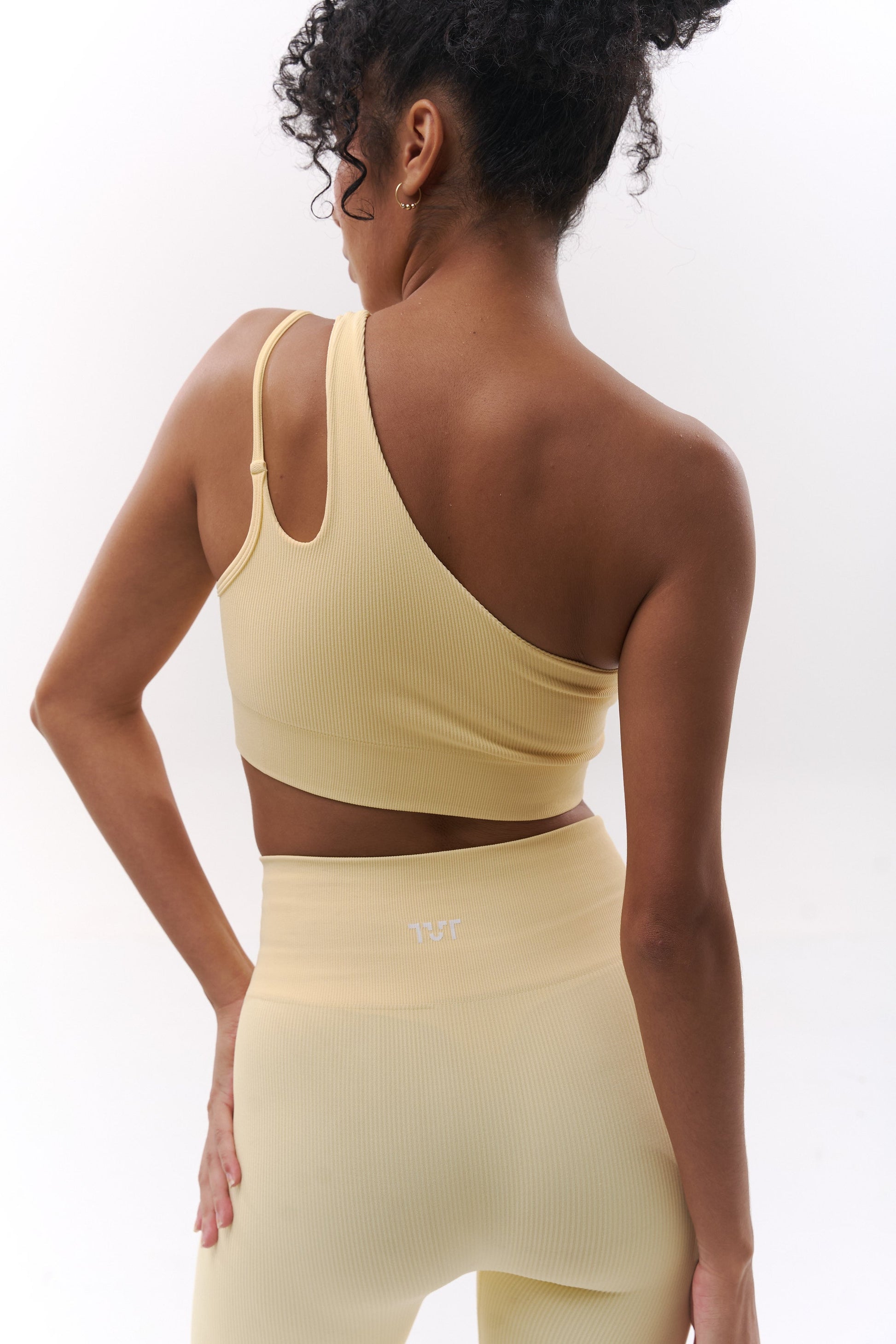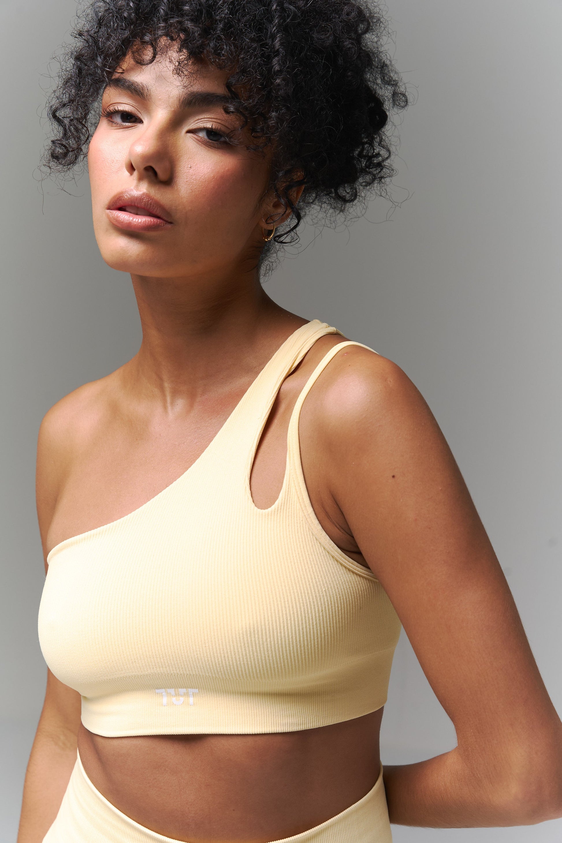 Top con tecnología Seamless y soporte medio/alto, diseño de un hombro delicado, dando un look muy femenino.