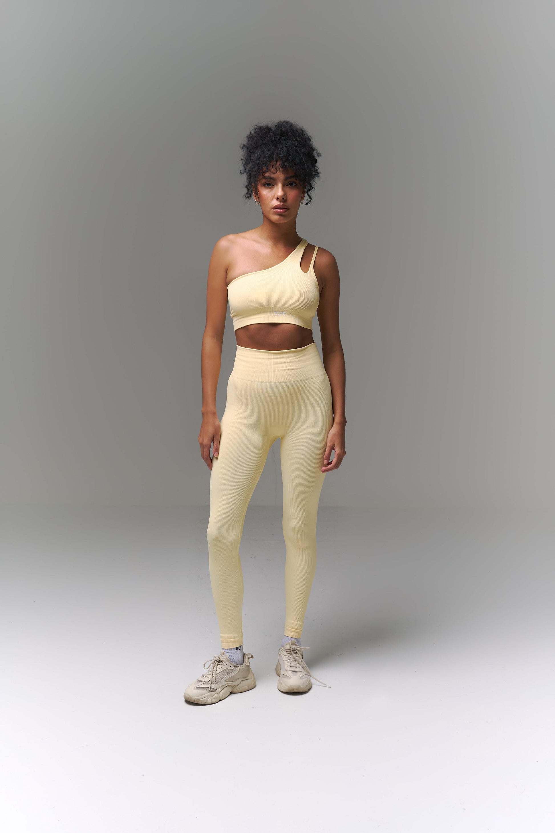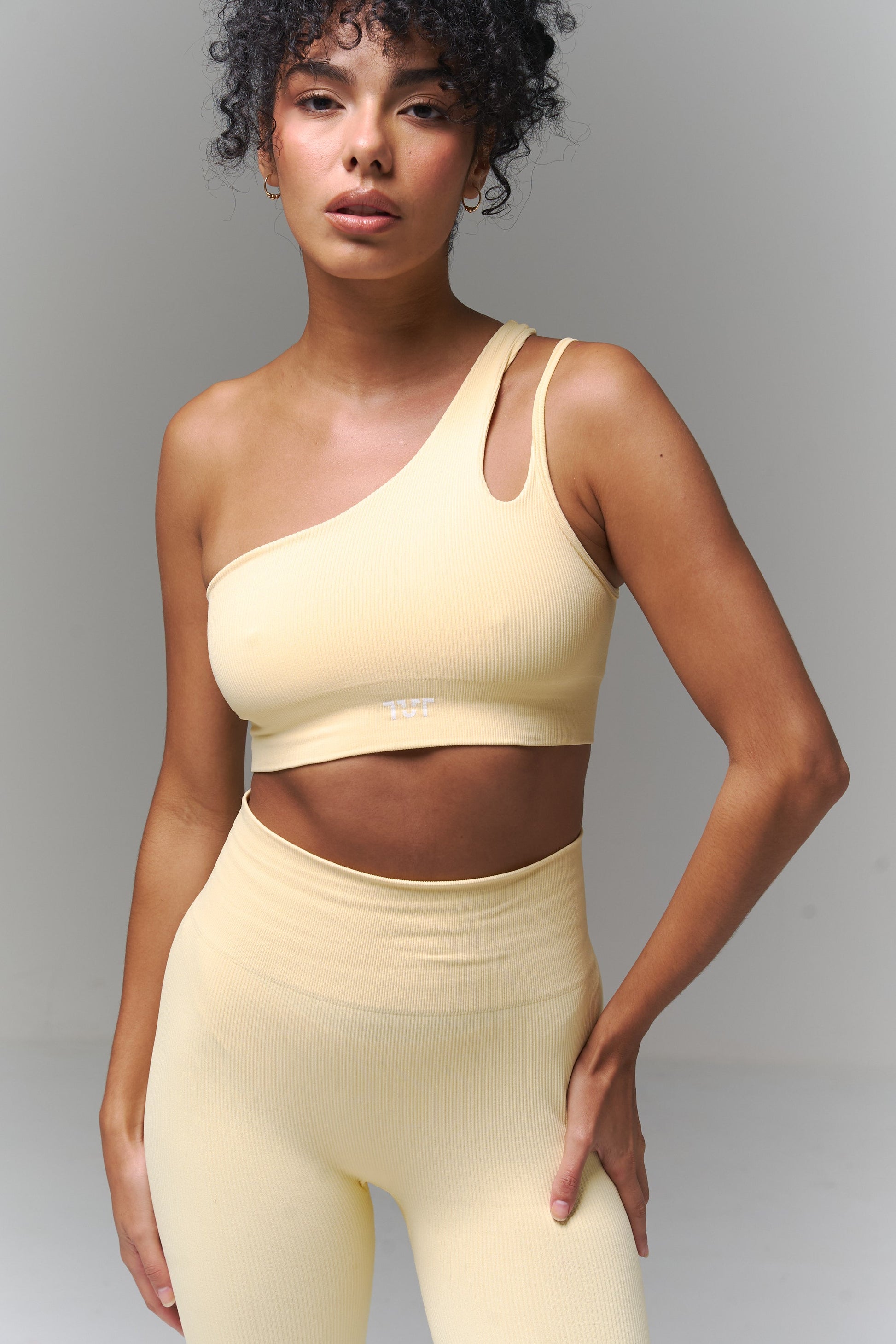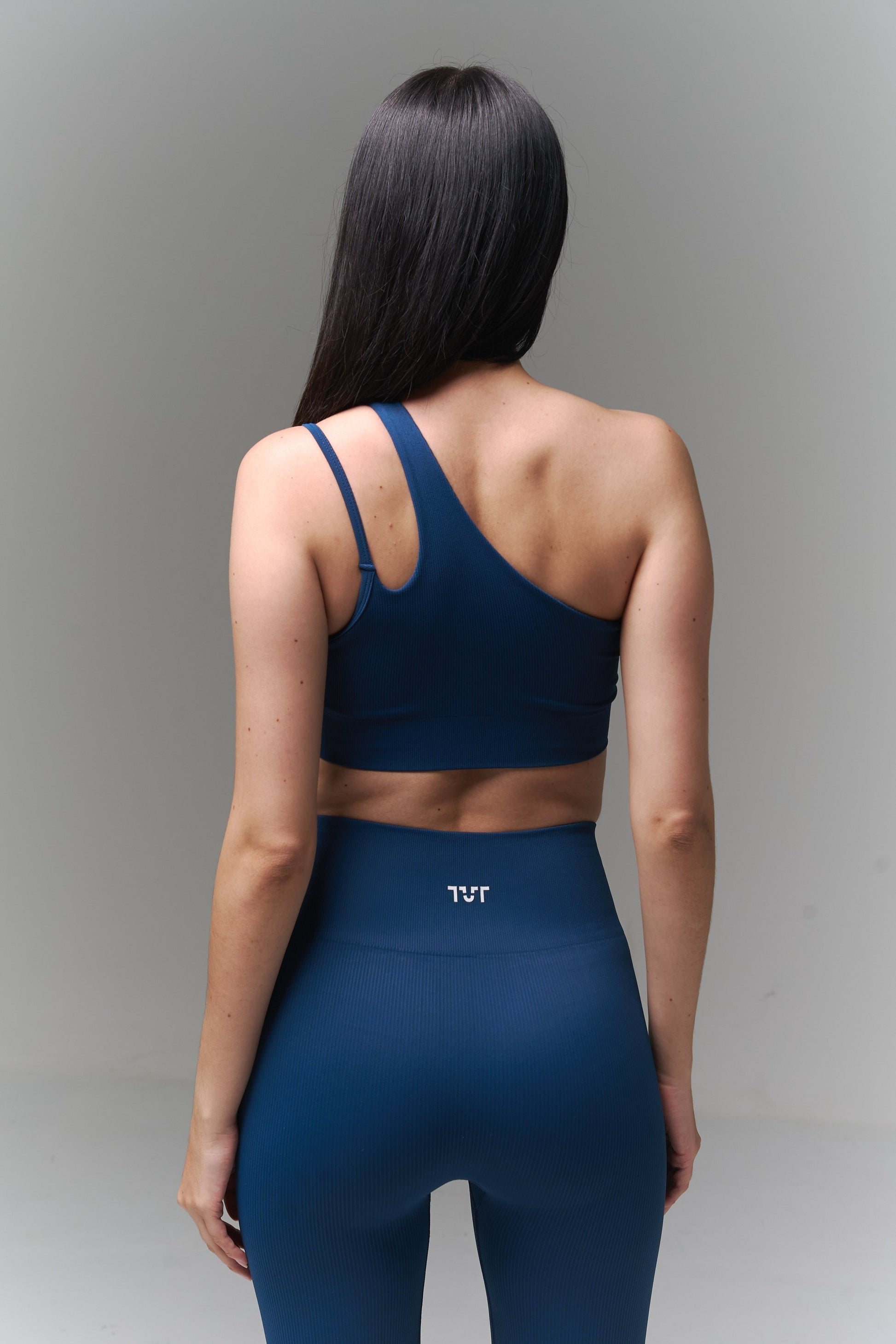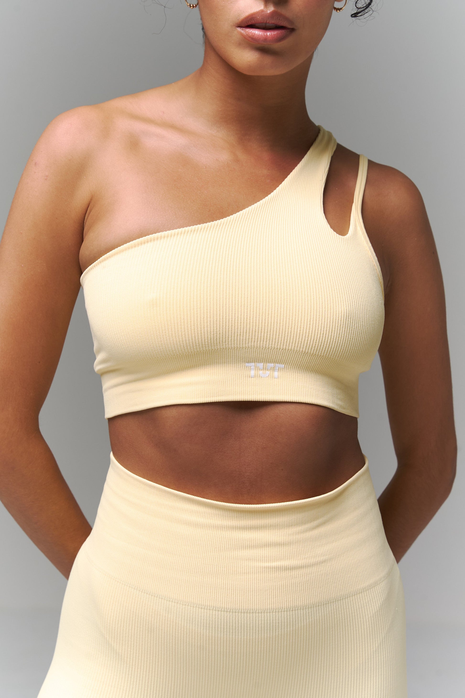 Top con tecnología Seamless y soporte medio/alto, diseño de un hombro delicado, dando un look muy femenino.