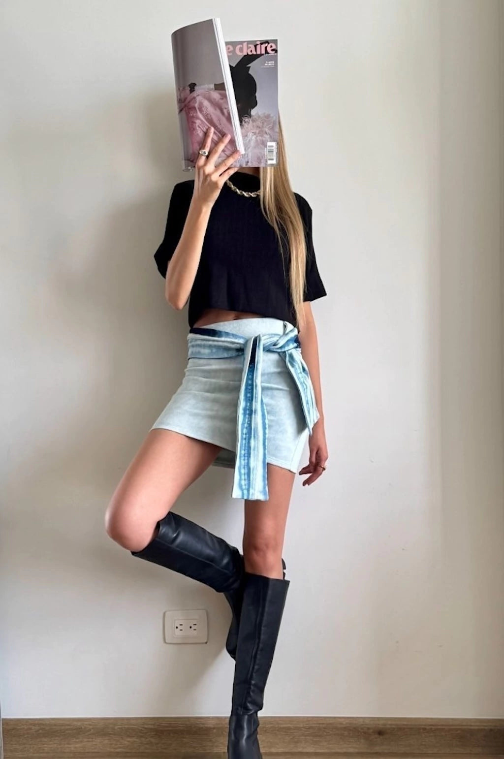 La mini que transforma tu look en un vibe. Esta falda denim no es un básico, es un mundo de posibilidades por estas 3 razones: