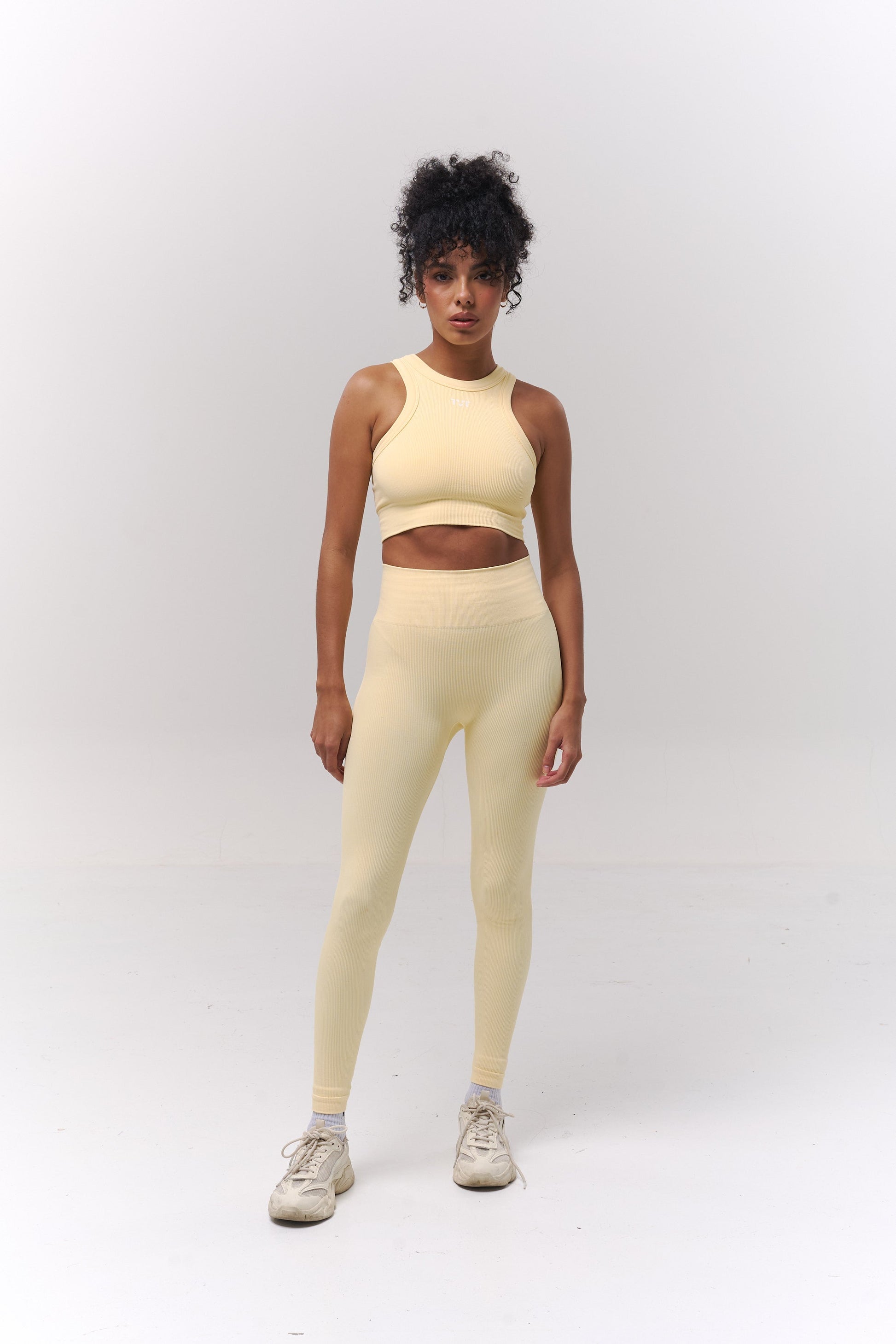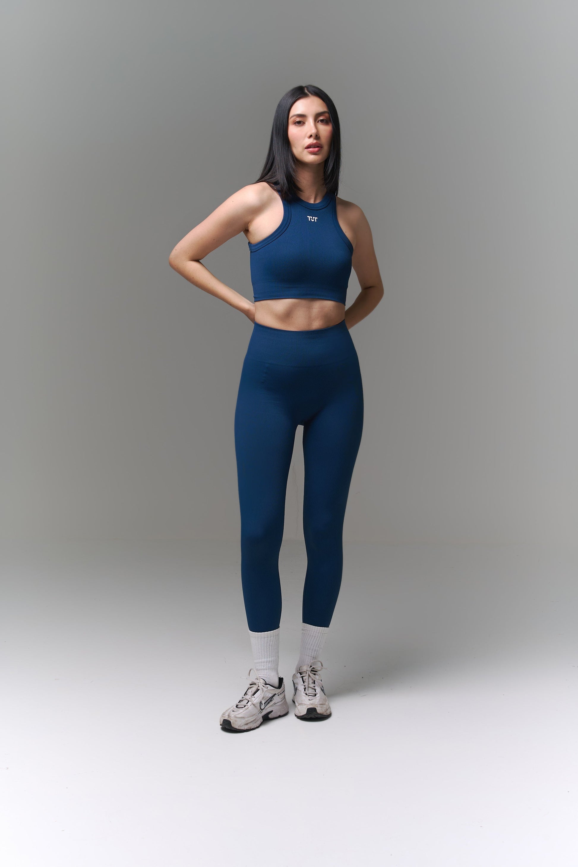 Legging con tecnología Seamless y tiro alto, diseño clásico con leves relieves que otorga un look elegante y fresco.