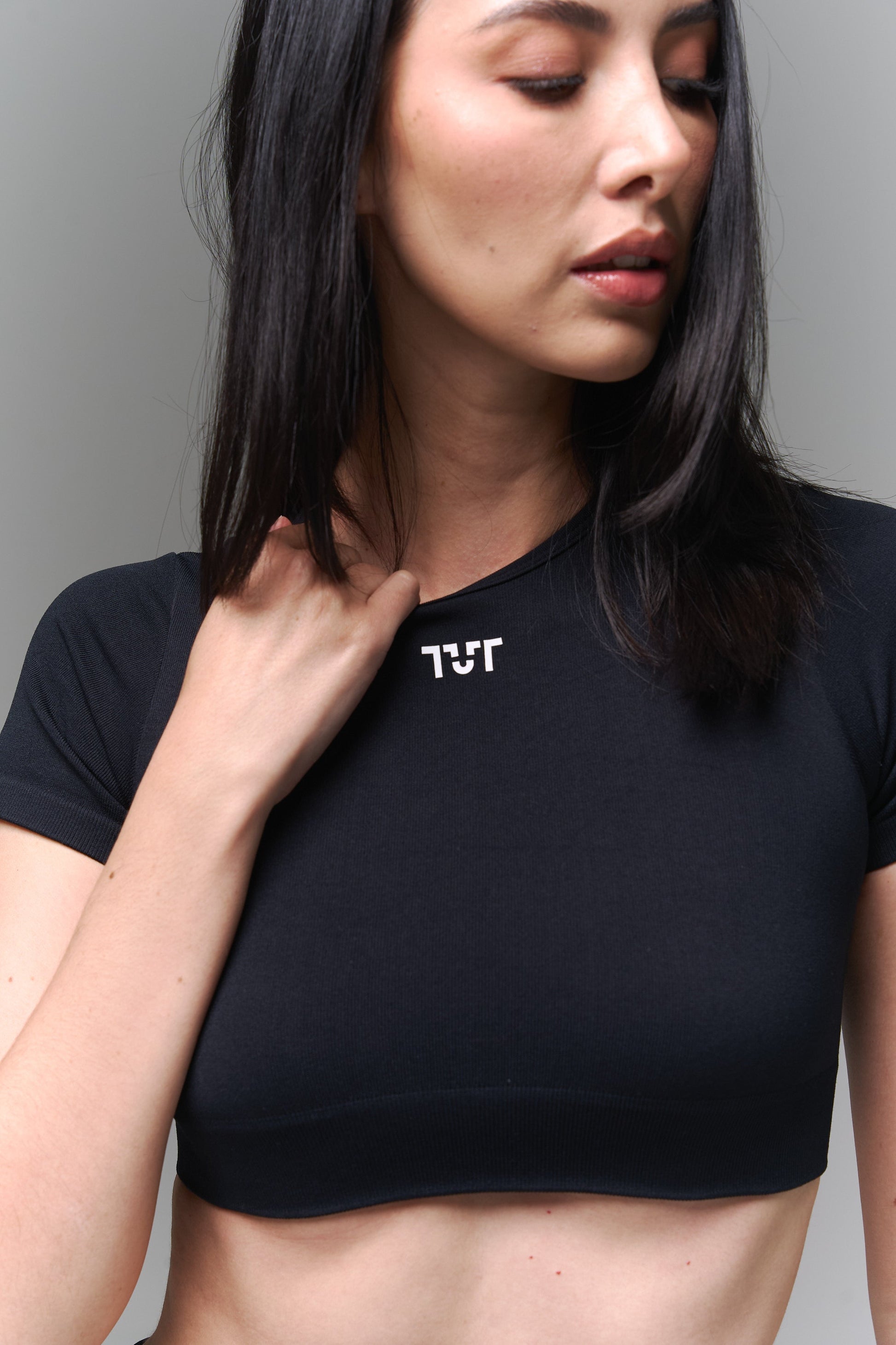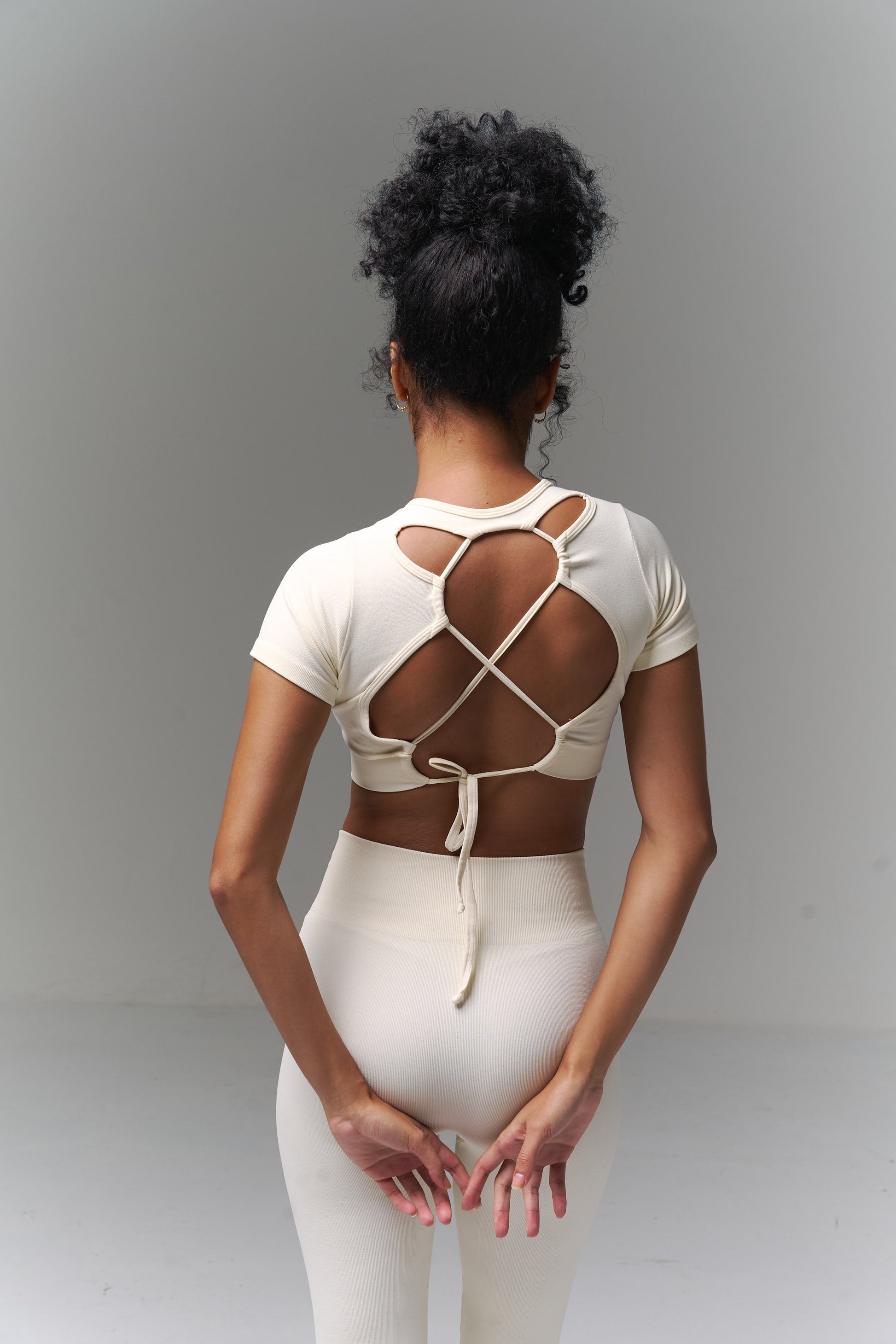 Top con tecnología Seamless manga corta, brinda un soporte medio/alto, escote en la espalda con tiras ajustables que otorga un look increíble al estar completamente cómodas.