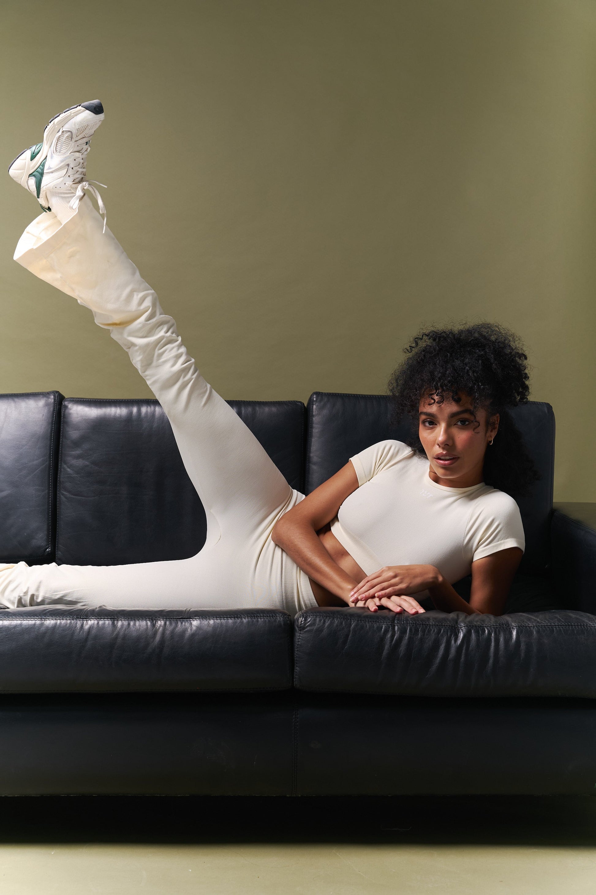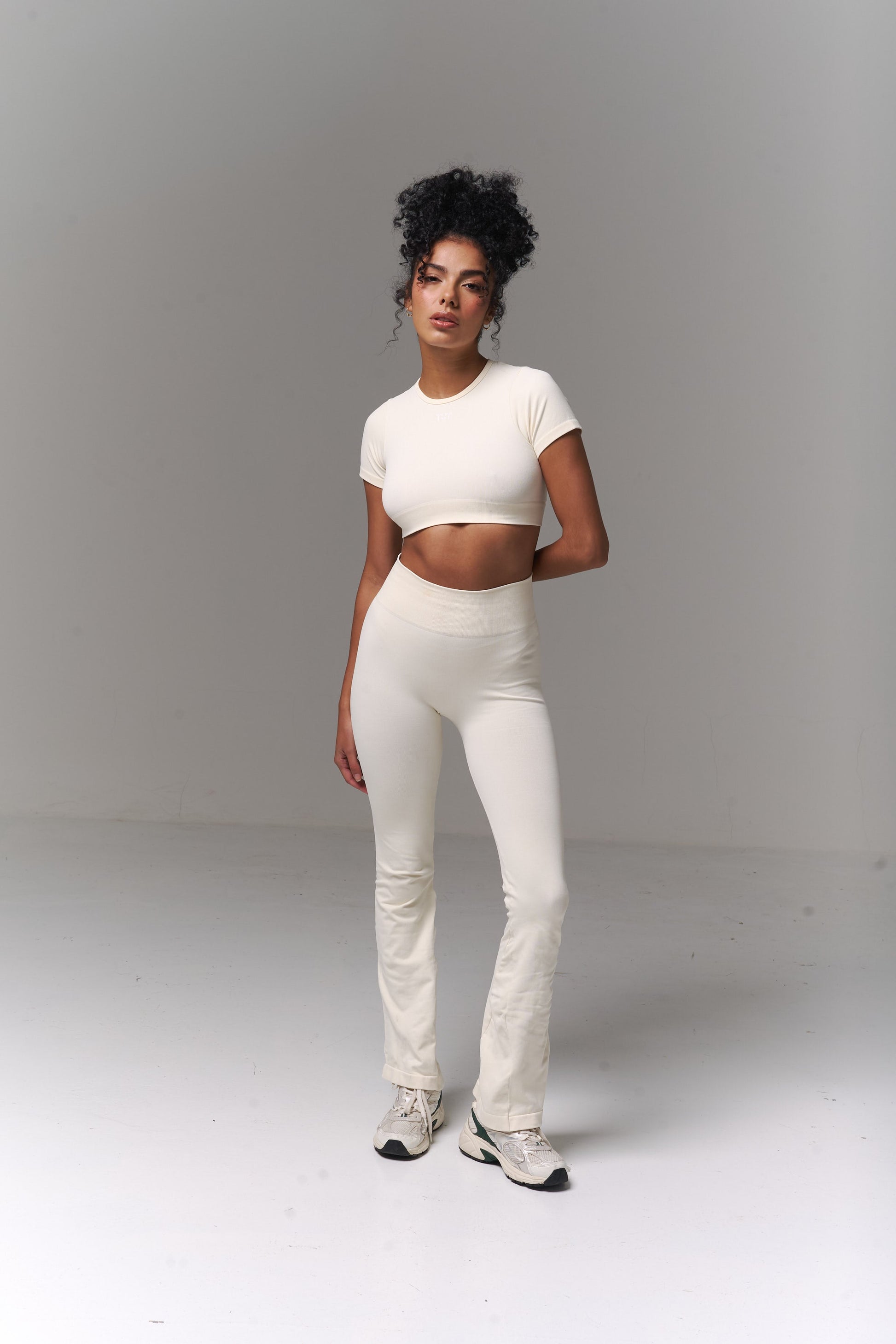 Legging con tecnología Seamless y tiro alto, diseño moderno moda campana que brinda un look fresco y cómodo que favorecer la silueta femenina.