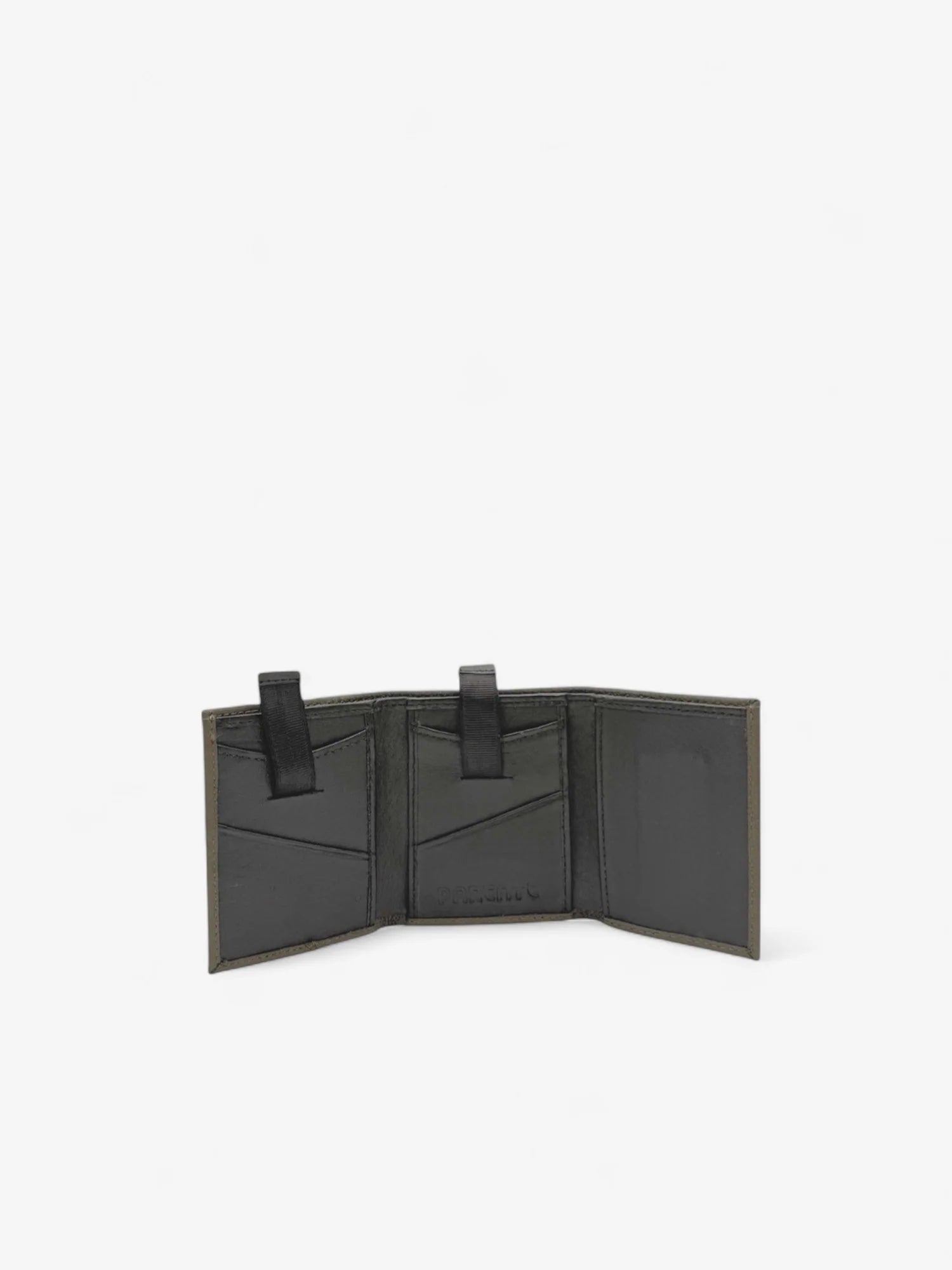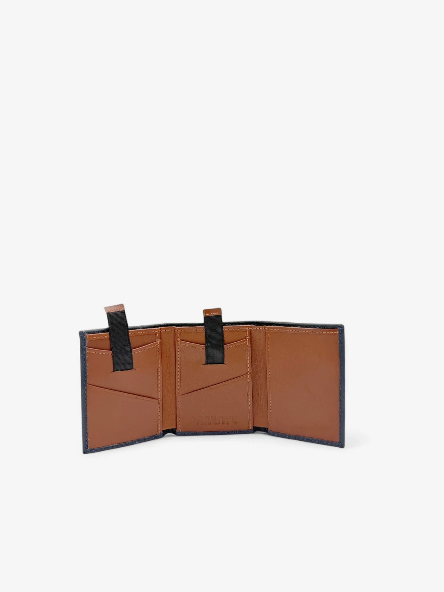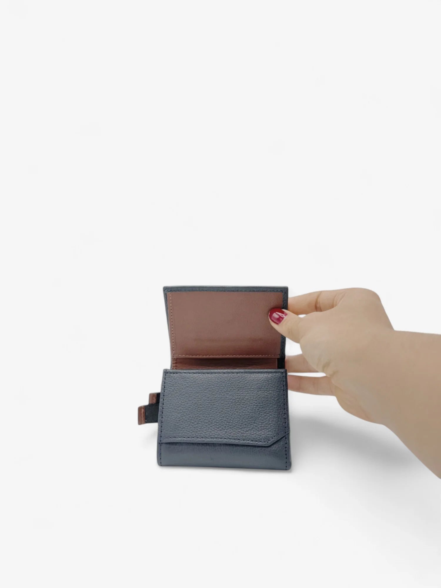 Su diseño tríptico compacto y estructurado ofrece máxima organización con el menor volumen posible, ideal para quienes se mueven con ligereza pero no renuncian al estilo. Tiene protección RFID para evitar robo.
