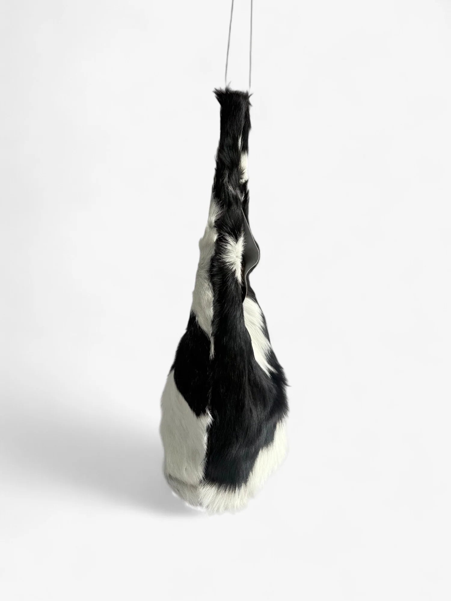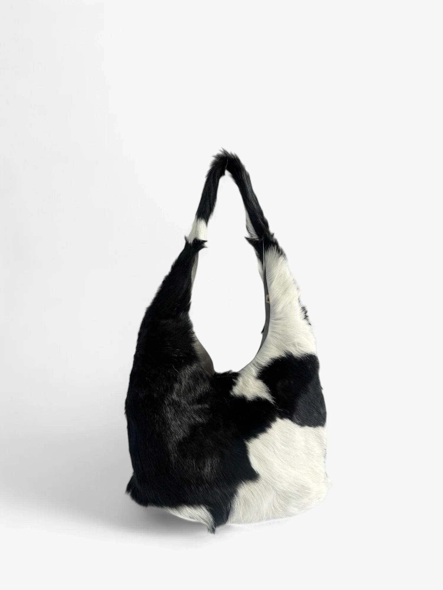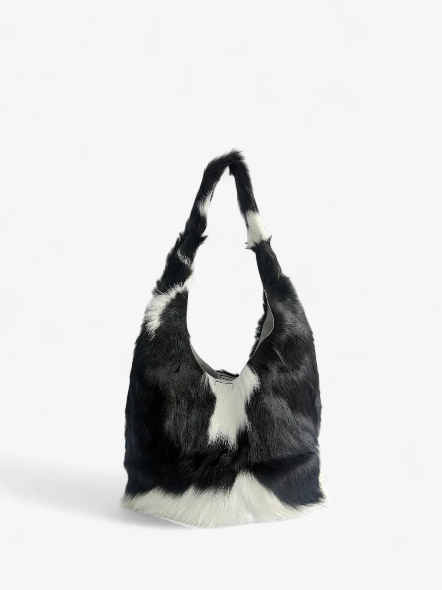 Nuestra cartera estrella es una declaración de estilo que no pasa desapercibida. Hecha con cuero pelo de vaca 100% colombiano, cada pieza es única, irrepetible y auténtica —con manchas naturales que pueden variar entre tonos grises o cafés, según la piel 🐄✨.